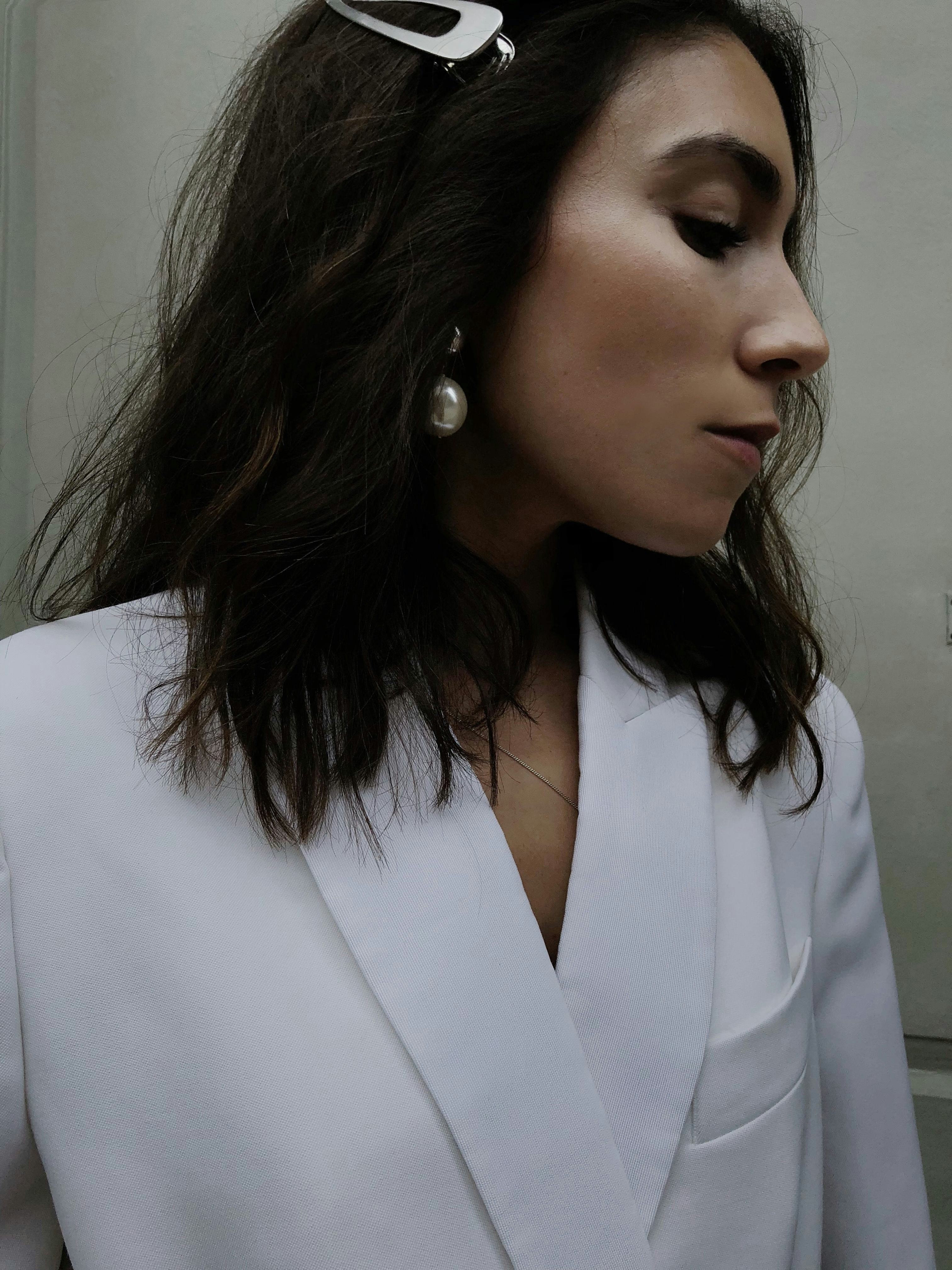 He cut mine just below my collar bone, keeping it long enough for me to execute a hair-tuck, my favorite fall hairstyle. “Some people think the shorter the better, but that’s not always true,” he says. “Shorter hair means more frequent haircuts. However, longer bob lengths or mid-lengths are great, because they make a statement but don’t require much up keep and grow out really nicely.” Check and check. And it turns out, all the fussing I was doing with my hair was doing it more harm than good. “The less you touch it when you’re out of the shower the better,” Arrunategui says, who tells me I should brush it in the shower with a wide-tooth comb instead of messing with my round brush. He also advises to apply most styling products when your hair’s wet.