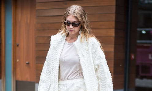 To an extent, it's understandable why the majority of your white pieces are pushed towards the back of your closet come fall. Think about it: Your white linen pants are perfect for braving the heat on a poolside, summer day, but not so perfect for fall's testy forecasts. That's where Hadid's take comes into play: The model opted for a comfortable, monochromatic look that didn't read summery.