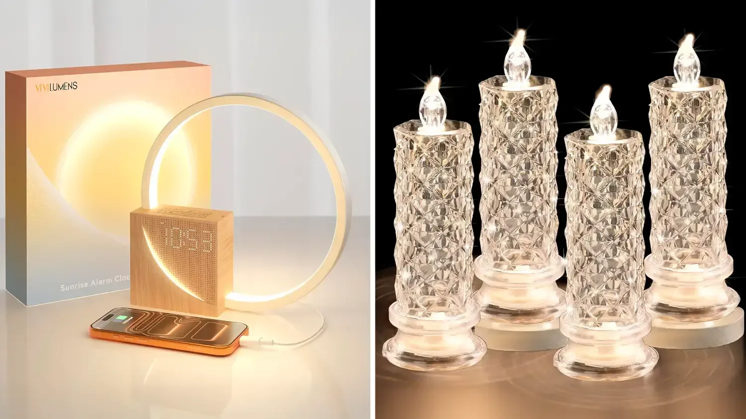 Although they look realistic, these battery-operated candles have LED lights that look like flames. Their chic rectangular shape and ribbed design provides a luxurious look that’ll elevate any room in your home. By the way, they also include a remote so you can turn them on and off, set a timer, adjust the brightness, and choose from two lighting modes from anywhere.
