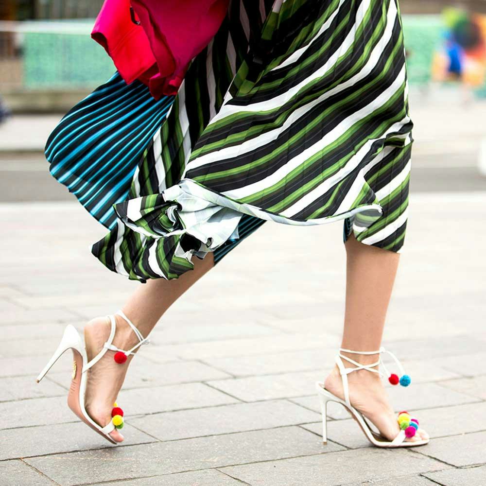 Eye-catching embellishments are everything when it comes to footwear this spring. From candy-colored pom-poms to multilayered gems to metallic fringe, bold adornments abound. And while they stun on the street-style scene, they can feel overcomplicated in real life. Our solution? Keep it simple. Choose your statement shoe, and wear it with your favorite jeans, a classic T-shirt, a cool handbag and voilà!—instant chic. From flatforms to textured mules, here are nine of our favorites. Be prepared to field an endless stream of compliments.