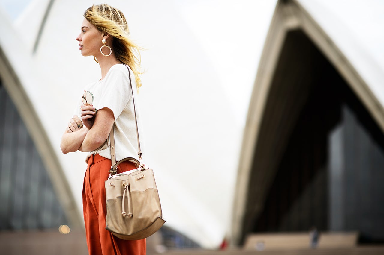 A slouchy leather handbag transitions from busy weekdays to off-duty weekends seamlessly.