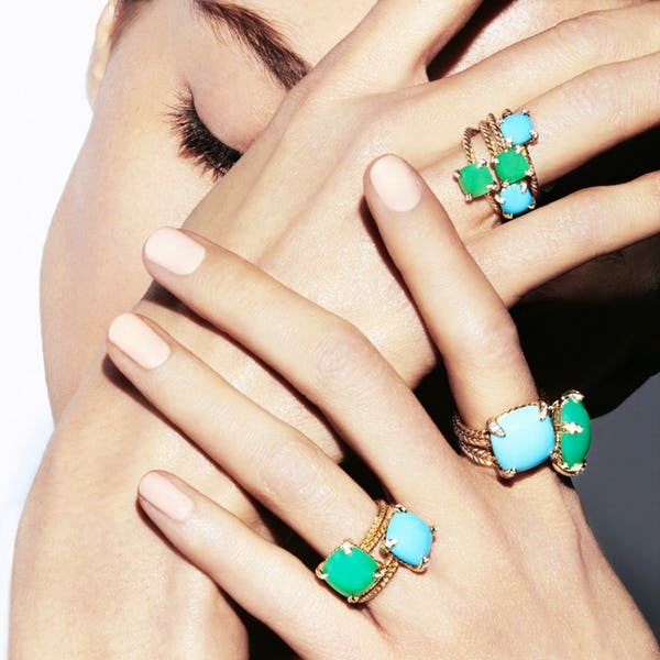 Dress up a basic Oxford shirt and tailored shorts with a sparkling ring in a unique color.
